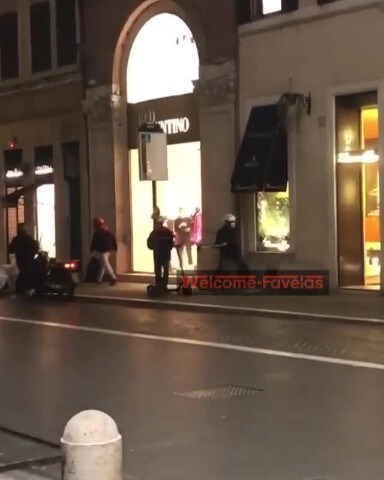 Tentato furto in via del Babuino a Roma. La vetrina del negozio di lusso resiste e i ladri sono costretti a scappare.