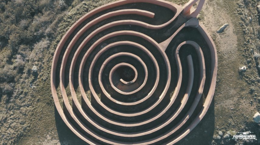 Nelle immagini girate col drone dal fotografo Pio Andrea Peri è possibile scorgere questo luogo che sembra sospeso nel tempo: oltre al labirinto si scorge anche l'opera 38º parallelo - Piramide.