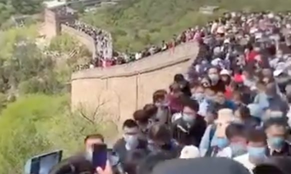 Nella giornata del primo maggio, uno dei siti turistici più famosi al mondo, è stato preso d'assalto con migliaia di persone che si sono accalcate sulla famosa Grande Muraglia cinese.