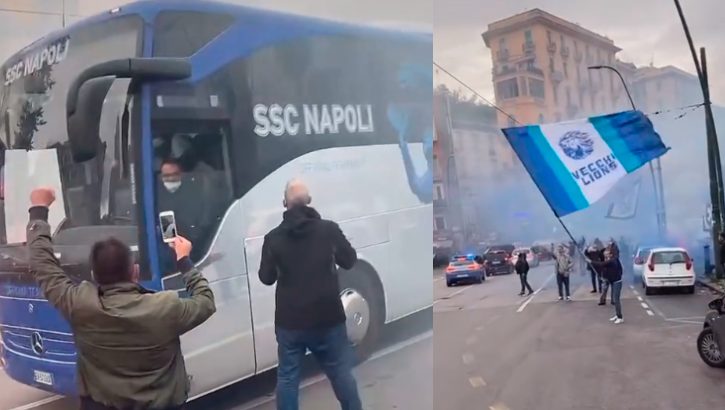 Pullman del Napoli si ferma durante il tragitto allo stadio: i tifosi salutano la squadra