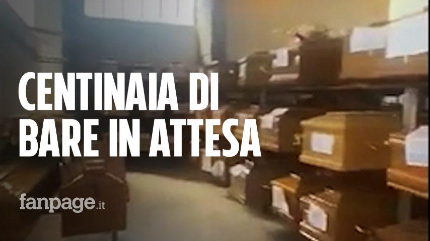 Le immagini riprese il 19 aprile 2021 immortalano centinaia di bare impilate nel deposito del cimitero Flaminio-Prima Porta. Sono salme che aspettano il proprio turno per essere cremate.