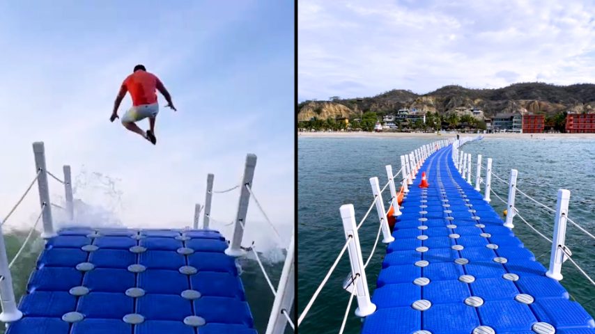 C’è un posto nel mondo dove puoi camminare sull’acqua e rincorrere le onde. Non si tratta di un miracolo ma di un ponte galleggiante sull’Oceano Pacifico che regala ai più spericolati una scarica di adrenalina memorabile, soprattutto quando si trovano a sfidare le onde dell’oceano che spesso sono così alte da sollevare il pontile anche di alcuni metri. Il ponte, lungo 155 metri e largo circa 2 metri, si trova in Perù, nel distretto Zorritos, ed è stato installato a febbraio di quest’anno dal resort Maliah Beach Club per attrarre i turisti e risollevare l’economia della costa nord del Paese.