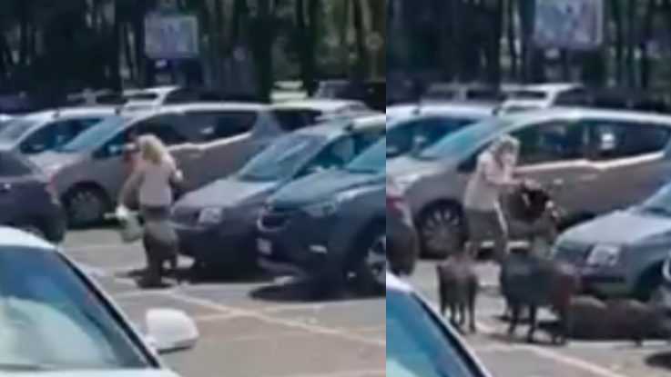 Nel parcheggio di un supermercato un branco di cinghiali accerchia una donna con le buste della spesa. Accade presso il centro commerciale a Le Rughe, sulla Cassia Bis, nel comune di Formello. La donna è costretta a cedere e mollare le buste, con i cinghiali che ringraziano per poi cibarsi.