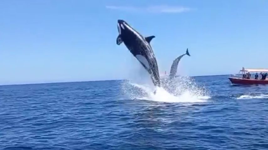 Orca attacca un delfino: fa un salto di 5 metri e lo sperona