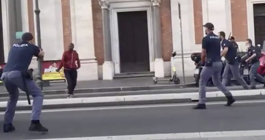L'uomo è stato portato in ospedale all'Umberto I in codice rosso, non è in pericolo di vita. L'episodio è avvenuto sabato 19 giugno in via Marsala, nei pressi della stazione Termini di Roma, poco prima delle 20. Il 44enne stava brandendo un coltello contro gli agenti, tentando nel frattempo di fuggire. Panico tra le persone che si trovavano nella zona e che hanno assistito alla scena.