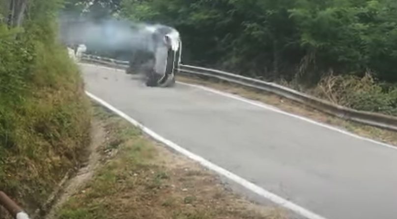 Uno spaventoso incidente durante il rally Coppa di Lucca che però non ha fatto registrare feriti per fortuna, con le due persone a bordo dell'auto rimaste illese.