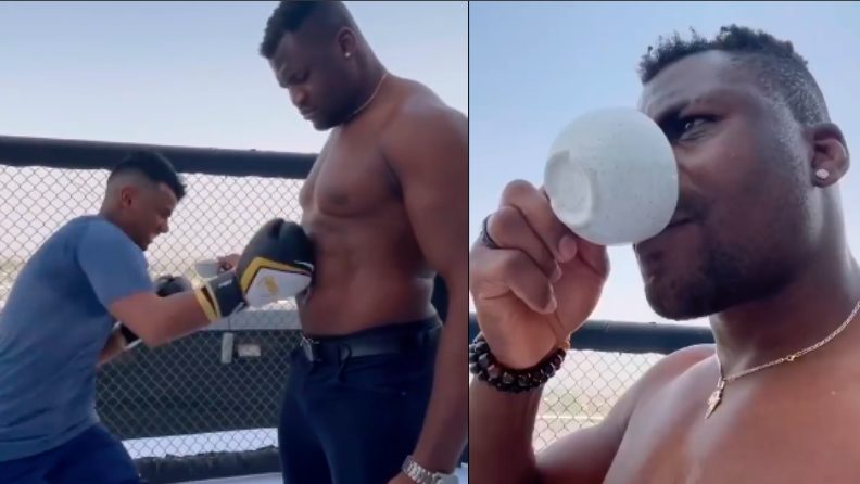 Francis Ngannou, campione dei pesi massimi Ufc, viene preso a pugni da un altro pugile mentre beve un caffè. E non si scompone minimamente.