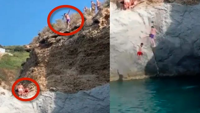 Due ragazzi si tuffano dalla scogliera a Ponza, da due punti diversi. Entrambi entrano in acqua nello stesso punto rischiando un terribile scontro.