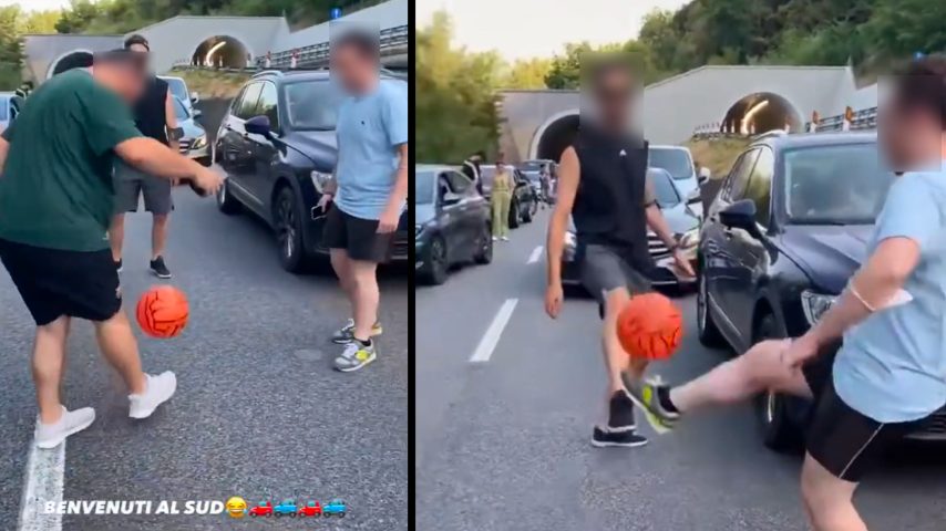Giocano a pallone in autostrada sulla Salerno-Reggio Calabria intasata: il video dei ragazzi diventa virale