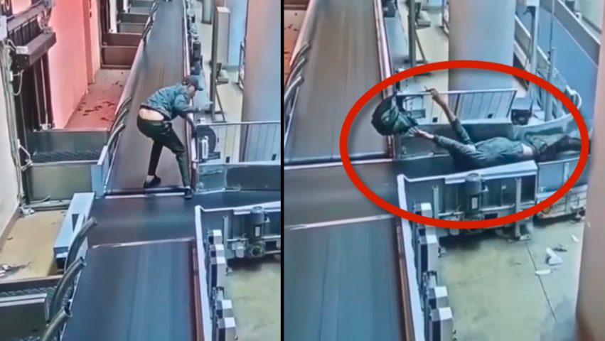 Un uomo russo è salito sul nastro trasportatore dei bagagli all'aeroporto internazionale di Sheremetyevo. A quanto pare l'uomo era ubriaco, quasi sicuramente poco lucido anche perché mostra evidenti difficoltà a reggersi e viene trascinato: alla fine è rimasto bloccato nello scanner dei bagagli; l'uomo è stato trattenuto dalla sicurezza aeroportuale ed è stato consegnato alla polizia.