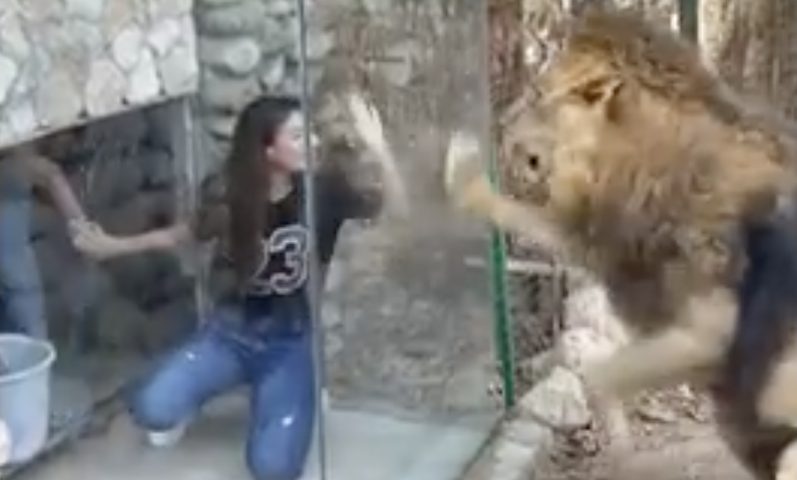 Una gabbia di vetro per avvicinarsi al leone: la reazione del grosso felino umiliato