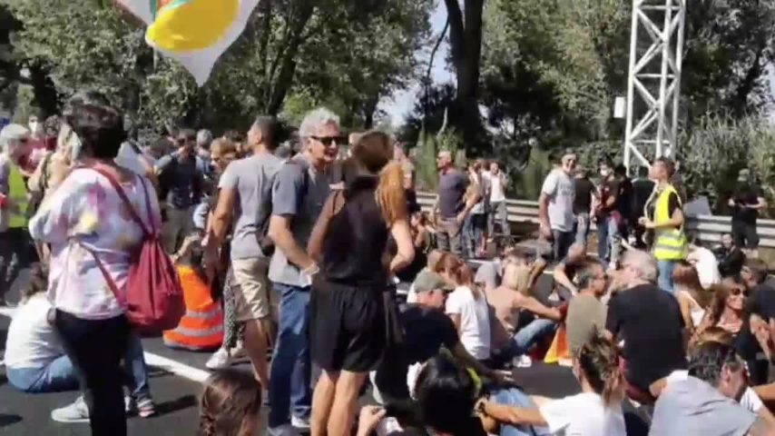 Autostrada Roma-Fiumicino bloccata dai lavoratori di Alitalia che stanno protestando contro i licenziamenti da parte dell'azienda. Si sono verificati scontri con la polizia.