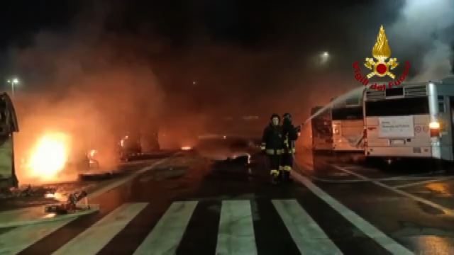 Coinvolti 30 autobus, prevalentemente alimentati a metano Roma, 5 ott. (askanews) - Intervento dei Vigili del Fuoco dalle ore 4.15 del mattino per un incendio nel deposito Atac di via Prenestina. Le fiamme hanno coinvolto circa 30 autobus, prevalentemente alimentati a metano. Fiamme spente, in corso operazioni di messa in sicurezza.