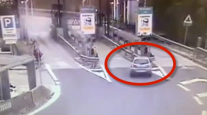 Perde il controllo dell'auto e si schianta sullo spartitraffico del casello dell'autostrada