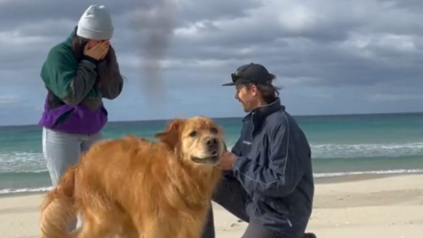 Lui le chiede di sposarlo, la reazione del loro cane è spettacolare
