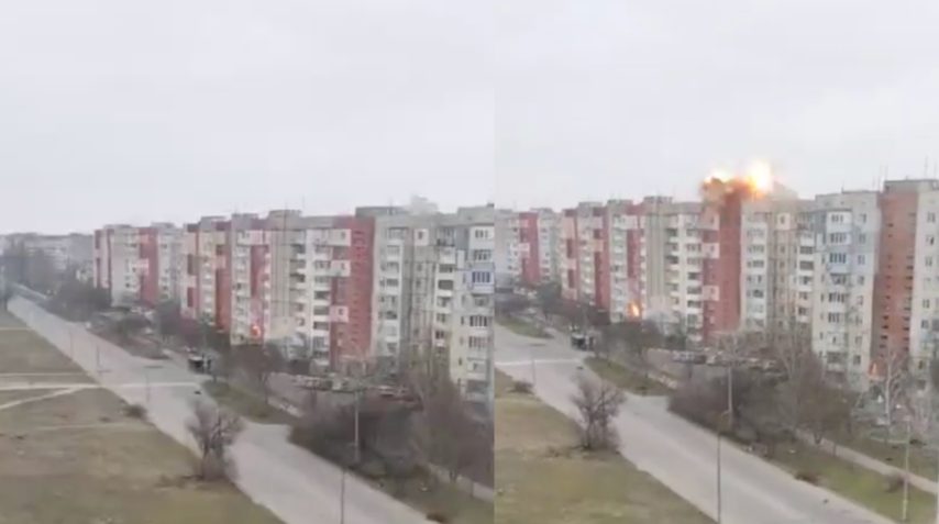 Un complesso residenziale colpito da un missile a Kherson. Le forze russe bombardano un'area residenziale a Kherson, nell'Ucraina meridionale.