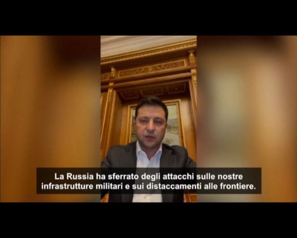 Zelensky su FB agli ucraini: "Esplosioni e attacchi, legge marziale"