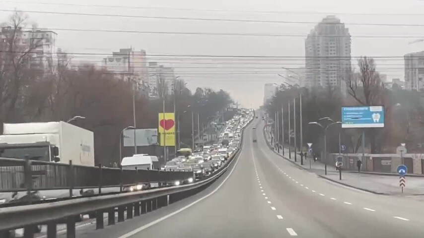 Ci sono molti chilometri di ingorghi all'uscita di Kiev, le persone stanno lasciando la città.