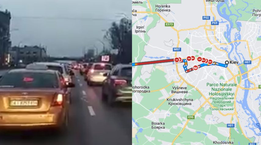 Sirene suonano a Kiev: una lunghissima fila di auto testimonia la fuga dalla capitale dopo l'attacco russo