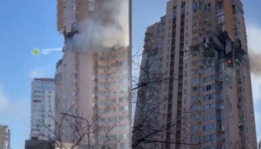 Arrivano ancora immagini tremende da Kiev, questa mattina un missile ha colpito un edificio residenziale nel quartiere di Zhulyan.
