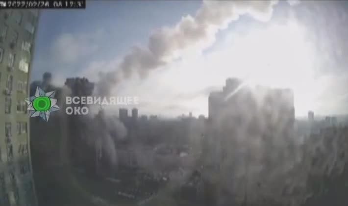 Un missile russo raggiunge un edificio residenziale nella capitale Kiev, distruggendolo parzialmente. Una scena terrificante, ripresa da una telecamera a circuito chiuso nella mattinata del 26 febbraio.