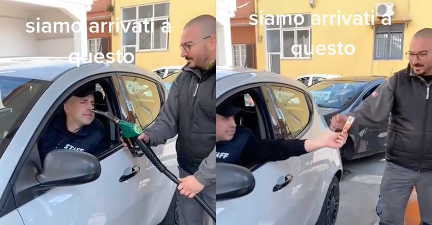 Su TikTok ha collezionato oltre 1 milione e mezzo di visualizzazioni: un video che ironizza sul prezzo alle stelle del carburante, in cui il gestore della pompa ti fa solo sentire l'odore della benzina.