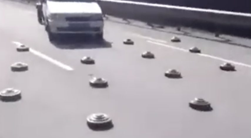 In un video pubblicato su Twitter dal diplomatico ucraino Olexander Scherba si vede un'auto che, non senza difficoltà, si districa tra le mine lasciate dall'esercito russo su un strada asfaltata nell'oblast' di Kiev