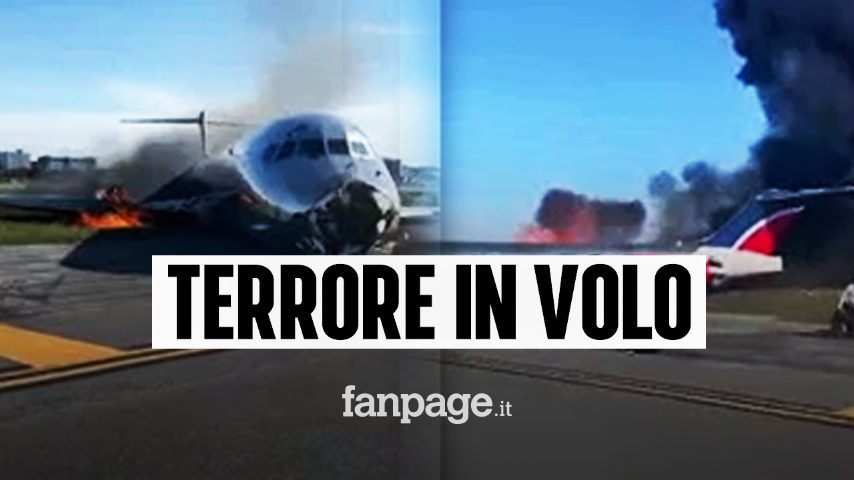 Aereo con 126 passeggeri prende fuoco sulla pista: si è staccato il carrello durante l’atterraggio