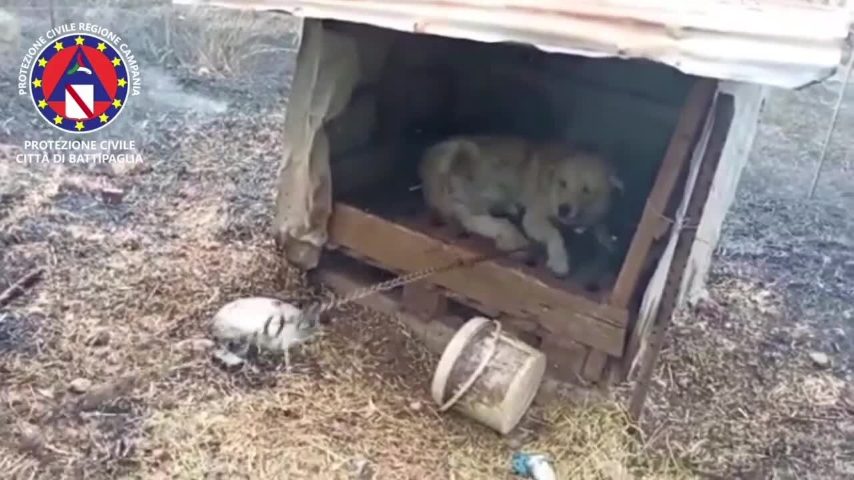 Un cane è rimasto bloccato in una cuccia dalla catena alla quale era attaccato, mentre intorno era scoppiato un incendio: salvato dai volontari della Protezione Civile di Battipaglia.