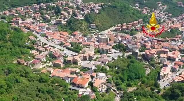 Monteforte Irpino, provincia di Avellino, dopo l'alluvione del 9 agosto 2022 la situazione dall'alto vista dall'elicottero dei Vigili del Fuoco.