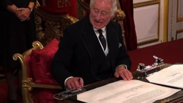 Durante la cerimonia di giuramento in diretta televisiva Milano, 10 set. (askanews) - Troppe penne e calamai, dei solenni fogli da firmare, troppo grandi per un tavolo troppo piccolo: durante la cerimonia di giuramento del re Carlo III a St James Palace le telecamere della diretta televisiva hanno colto le smorfie di imbarazzo del sovrano nel solenne momento della firma dei documenti: lo si vede spostare oggetti sul tavolo senza venirne a capo e tirare poi una occhiataccia agli addetti (fuori campo) per liberare spazio sul tavolo. Dopo l'intervento esterno, ecco finalmente la firma.