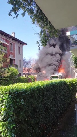 Milano, camion dei rifiuti si incendia ad Affori: intervengono i vigili del fuoco