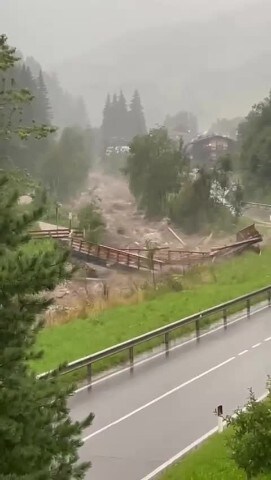 Nubifragio in Val Pusteria: l'acqua trascina via ponte di legno