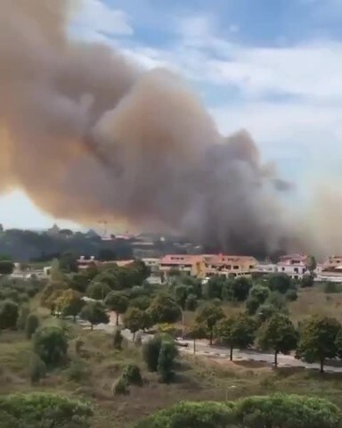 Fumo nero nel cielo a Pomezia, il rogo minaccia le case: vigili del fuoco sul posto