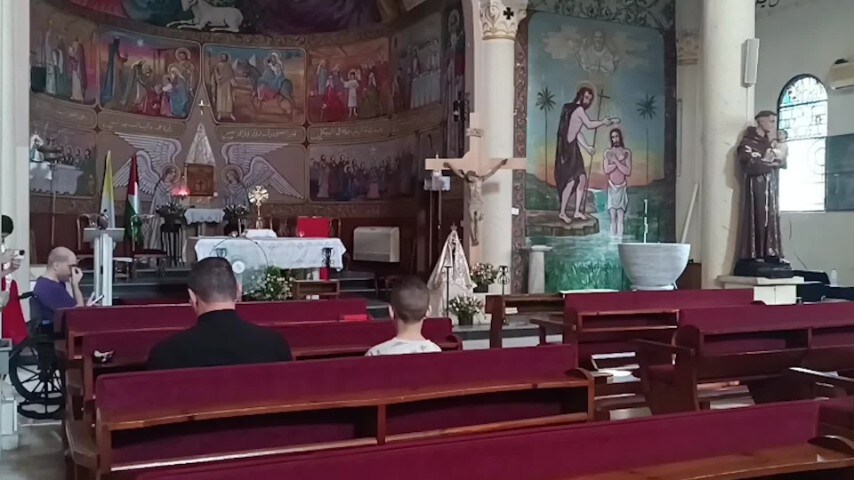Una forte esplosione ripresa udita all'interno della chiesa di Gaza di Padre Romanelli.