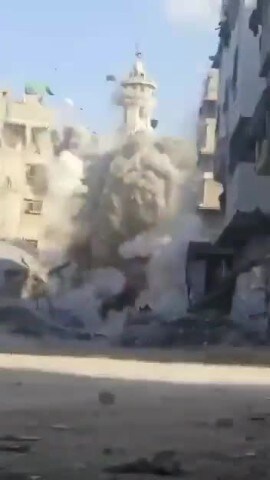 Un attacco aereo israeliano avrebbe colpito la moschea di Al-Aybaki nel quartiere di Al-Tuffah, nella parte orientale della città di Gaza: le immagini.