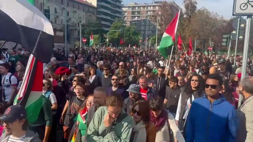 0:33 Sciopero per Gaza a Milano, i manifestanti: "La città lo sa da che parte stare"