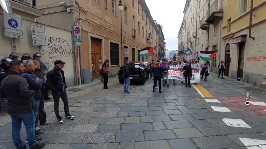 È in corso una manifestazione questa mattina dei collettivi universitari davanti alla Cavallerizza Reale, dove si è svolta la cerimonia di insediamento della nuova rettrice dell'Università di Torino, Cristina Prandi. Una cinquantina di studenti, in particolare del collettivo Cambiare Rotta, sono partiti da Palazzo Nuovo scandendo lo slogan "Boicotta Israele". In testa al corteo uno striscione: "Per la Flotilla, per la Palestina blocchiamo tutto! Sfiduciamo rettrice, Bernini e governo". Davanti all'ingresso della Cavallerizza hanno aggiunto: "O esce la rettrice o entriamo noi. Mentre lei festeggia dietro lo schieramento di polizia continua la collaborazione con Israele e state difendendo un genocidio". L'accesso in via Verdi è stato presidiato dalle forze dell'ordine in assetto antisommossa. Il corteo si è trasformato un presidio.