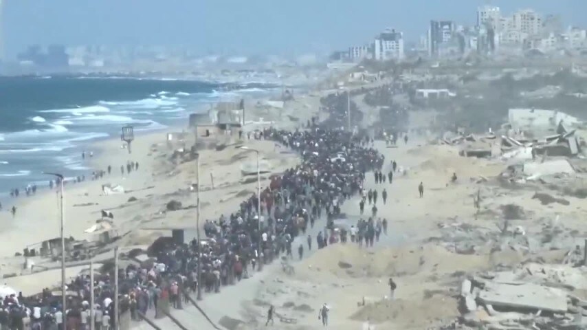 Migliaia di famiglie palestinesi si sono messe in viaggio a piedi dal sud della Striscia di Gaza vero Gaza City e il nord dell'enclave dopo il ritiro dell'esercito israeliano e l'accordo di cessate il fuoco raggiunto con Hamas.