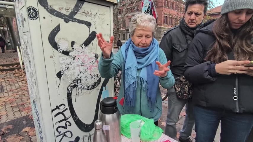 La signora Lucia, residente del quartiere del Askatasuna di Torino, ha deciso di scendere in strada anche lei per portare del tè caldo ai manifestanti che dall'alba sono in presidio davanti al centro sociale sgomberato oggi. Secondo la signora "i sindaci di prima non hanno fatto niente per evolvere questo spazio, questo si è dato da fare per questo patto di collaborazione dove tutti eravamo convinti che sarebbe diventato uno spazio a favore del quartiere. Adesso con questo intervento non so. Lui non può fare miracoli. Secondo me qui chi ha deciso sono persone più autorevoli"