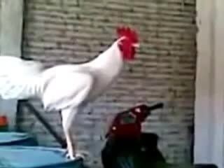 Esilarante "canto" di un gallo che invece di emanare il suo tipico verso, sembra che rida fragorosamente.