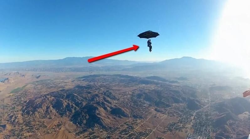 Erik Roner, sportivo estremo professionista, equipaggiato con una action cam, si è lanciato nel vuoto con un ombrello come nel film "Mary Poppins" di cui andava pazzo da piccolo.