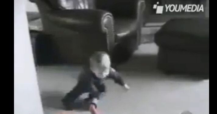 Un bambino, di non più di due anni, finge e piange per attirare l'attenzione.