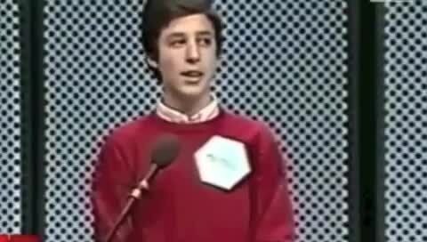 Un giovanissimo Matteo Salvini, attuale segretario della Lega Nord, concorrente al quiz per ragazzi Doppio Slalom