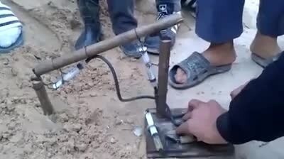 Il modellino di un'escavatrice fatto con legno, gomma e siringhe