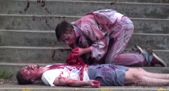 Uno zombie terrorizza la città, mangiando carne umana