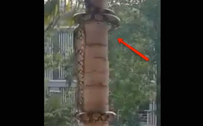 La tecnica "ipnotica" che usa questo grosso serpente per arrampicarsi sull'albero