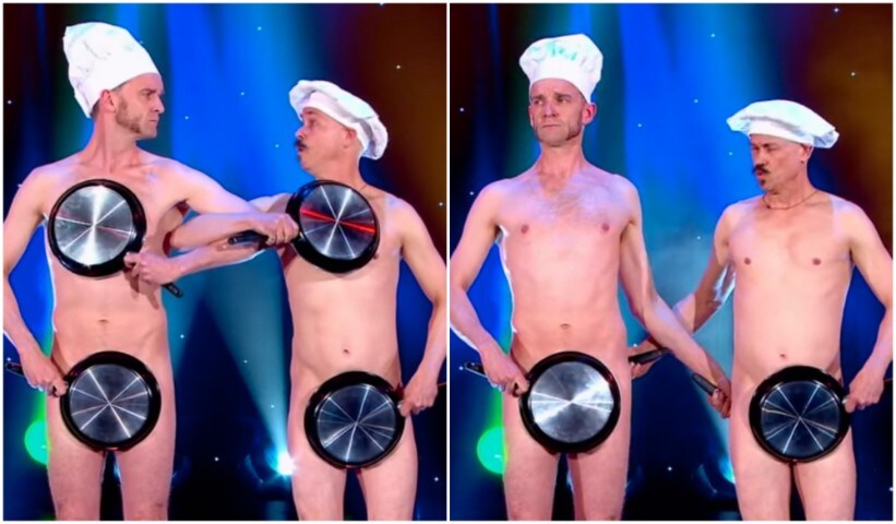 Completamente nudi, ballano coperti da padelle: ma guardate come va a finire