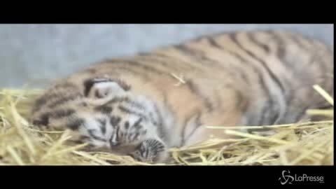 Al Woburn Safari Park, Inghilterra, è arrivato da poco un tigrotto protetto a vista dalla mamma che gira intorno a lui e lo veglia costantemente. Vederlo così beato nella paglia con gli occhietti chiusi è un'immagine di per sé molto tenera.