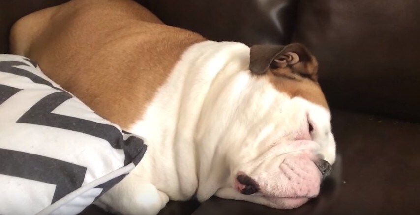 Il bulldog dorme beato: quello che fa durante il sonno vi farà troppo ridere